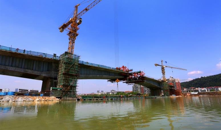 虹云橋連接桃花島和沈家壩片區(qū),為城南新區(qū)規(guī)劃的配套項目,起于桃花島,上跨涪江、芙蓉路,終點接綿鹽路,橋梁全長497米,其中主橋設(shè)計為83米+110米+83米三跨波形鋼腹板連續(xù)梁,橋梁寬度18米,設(shè)計行車時速20公里。項目建成后將加強城南片區(qū)與沈家壩片區(qū)的交通聯(lián)系,改善桃花島片區(qū)的出行條件,緩解涪江三橋的交通壓力。