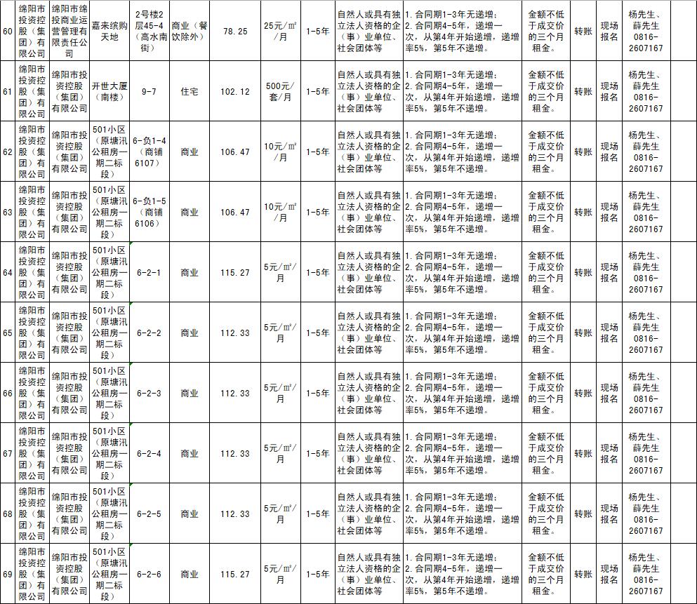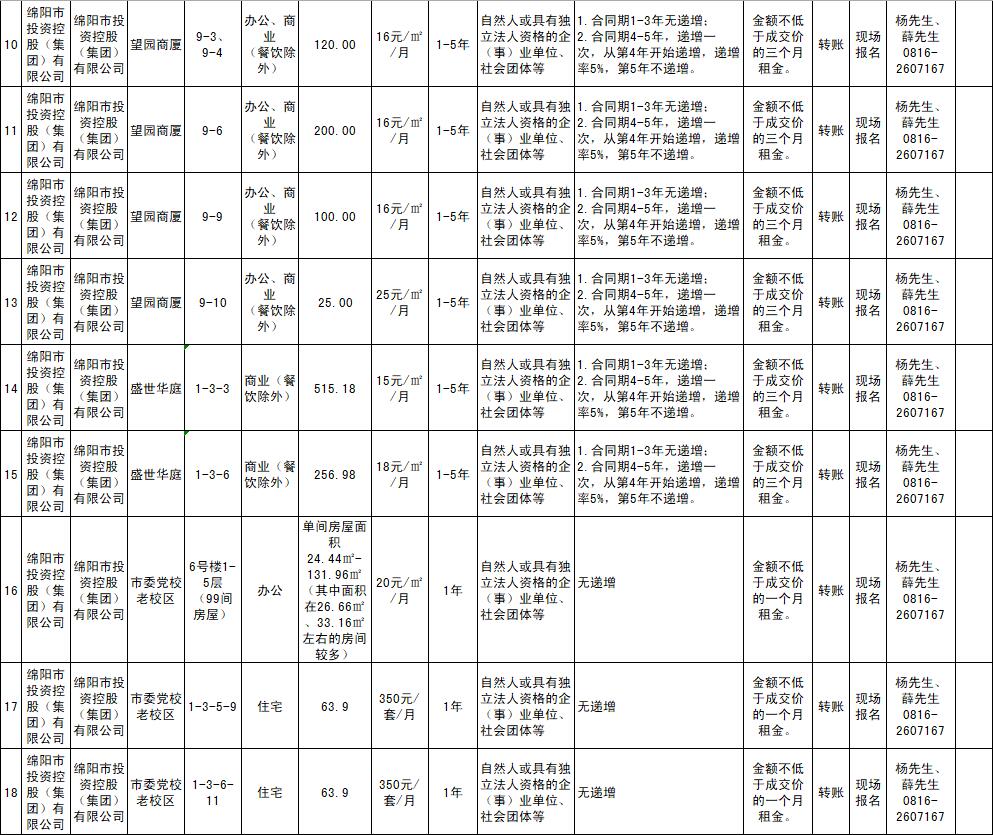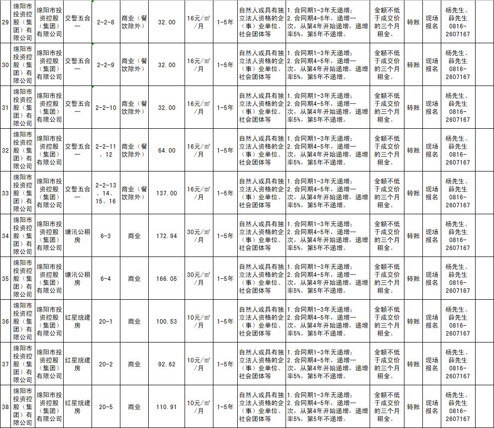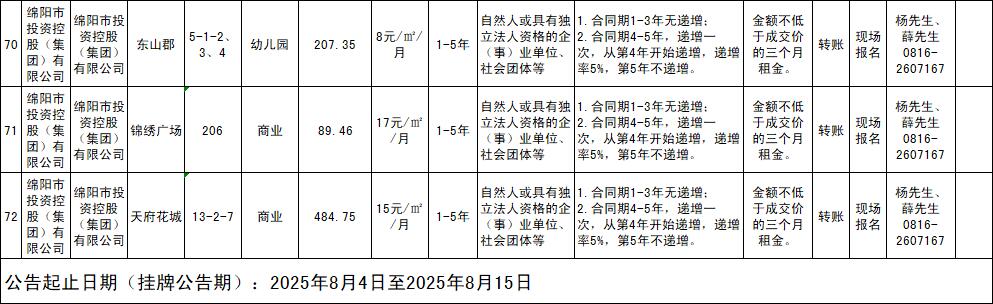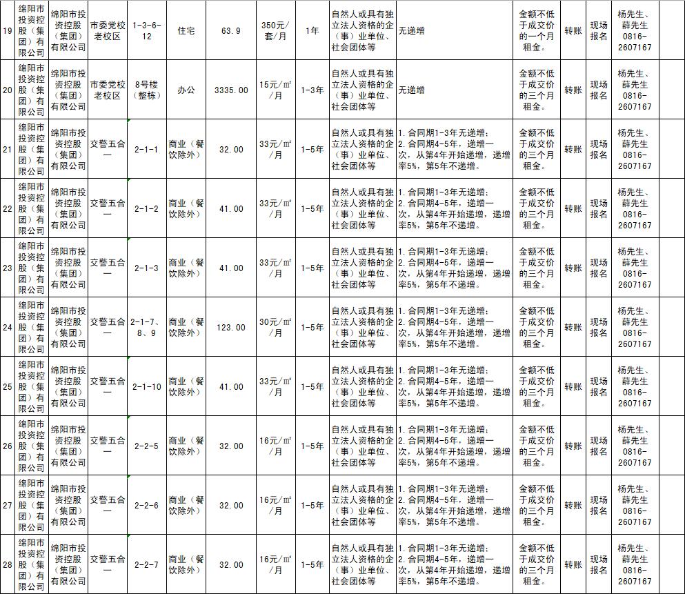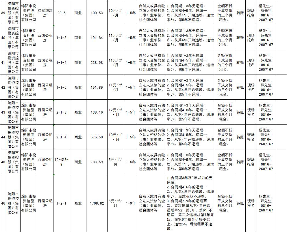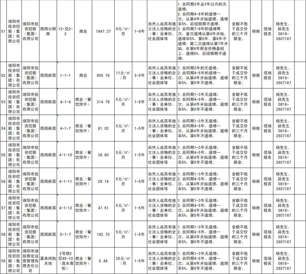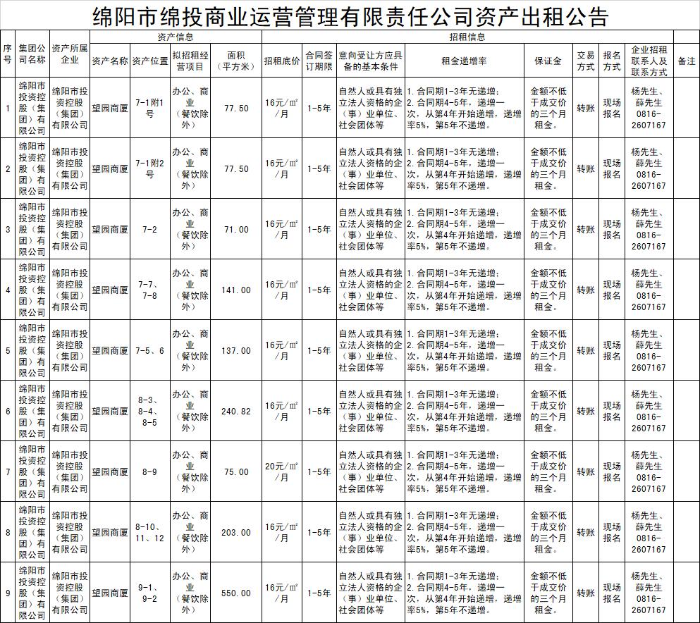 綿陽(yáng)市綿投商業(yè)運(yùn)營(yíng)管理有限責(zé)任公司資產(chǎn)出租公告