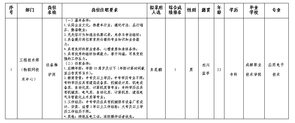 根據(jù)綿陽市城市停車管理有限公司發(fā)布的招聘公告及招聘相關(guān)規(guī)定,經(jīng)筆試、面試、考察、體檢等程序,擬錄用朱昆鵬到停車公司工作,現(xiàn)予以公示,具體情況如下: