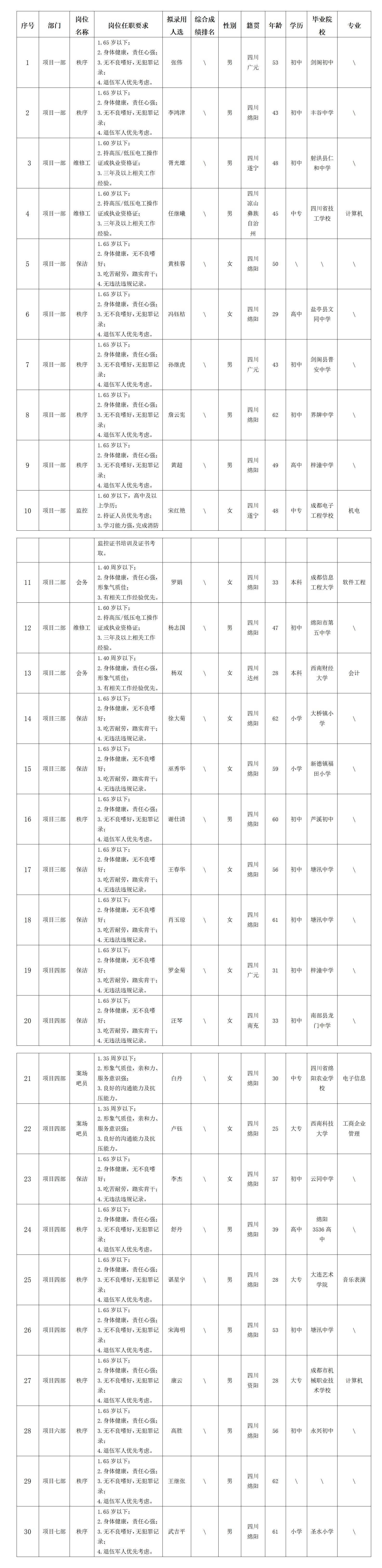 根據(jù)綿陽(yáng)市康來(lái)物業(yè)服務(wù)有限公司發(fā)布的招聘公告及招聘相關(guān)規(guī)定,經(jīng)面試等程序,擬錄用張偉等同志到各項(xiàng)目部工作,現(xiàn)予以公示,具體情況如下: